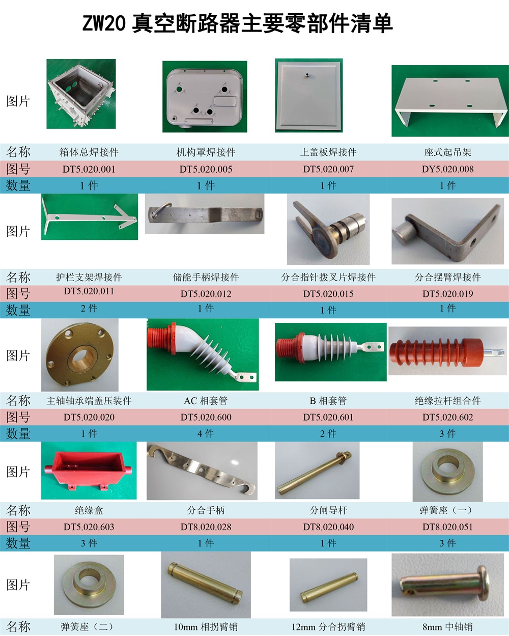 ZW20真空斷路器主要零部件清單
